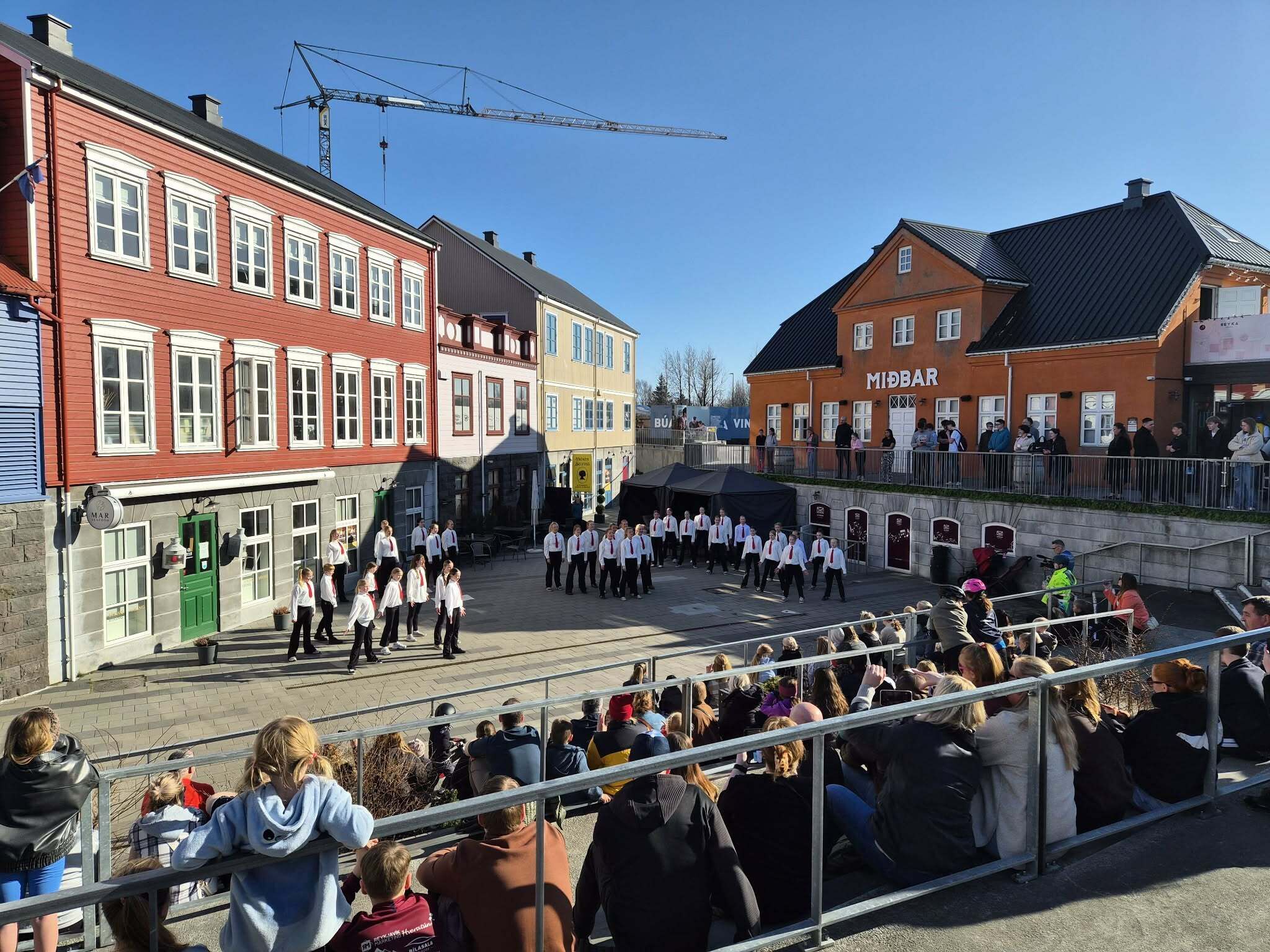 Veðrið lék við gesti í miðbænum.