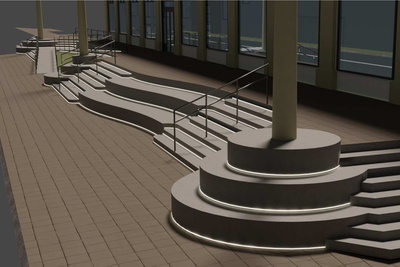 Rampurinn er hannaður samkvæmt leiðbeiningum Öryrkjabandalags Íslands um aðgengi fyrir öll. Með þessari útfærslu er tryggt gott og öruggt flæði gangandi vegfarenda í allar áttir, óháð því hvaðan þeir koma eða hvert þeir stefna. Hæðarsetningar þrepa hafa verið einfaldaðar og verða endanlegar mælingar teknar við lokahönnun.