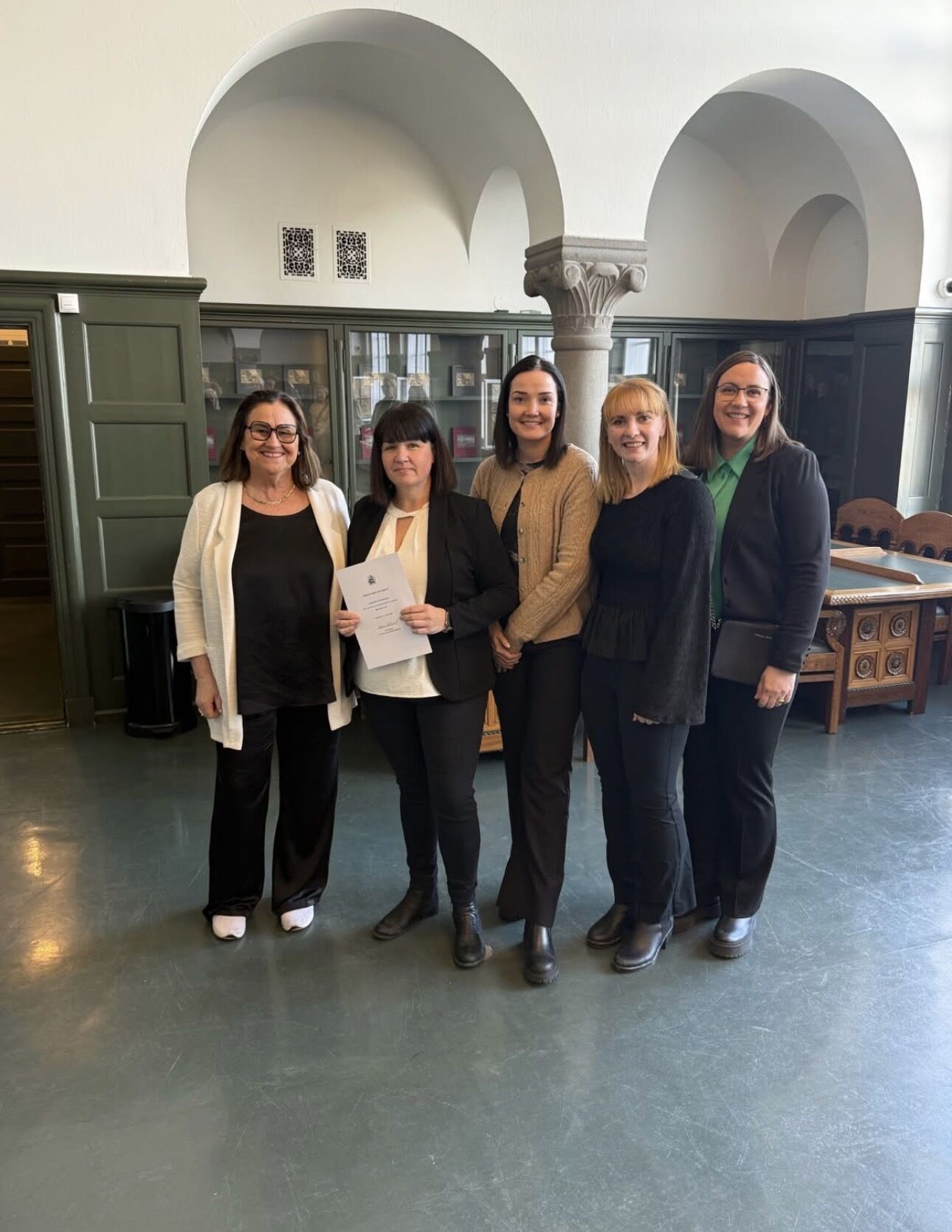 Inga Sæland, mennta- og barnamálaráðherra, ásamt styrkþegum og Braga Þór Svavarssyni stjórnarformanni Sprotasjóðs, í Safnahúsinu.