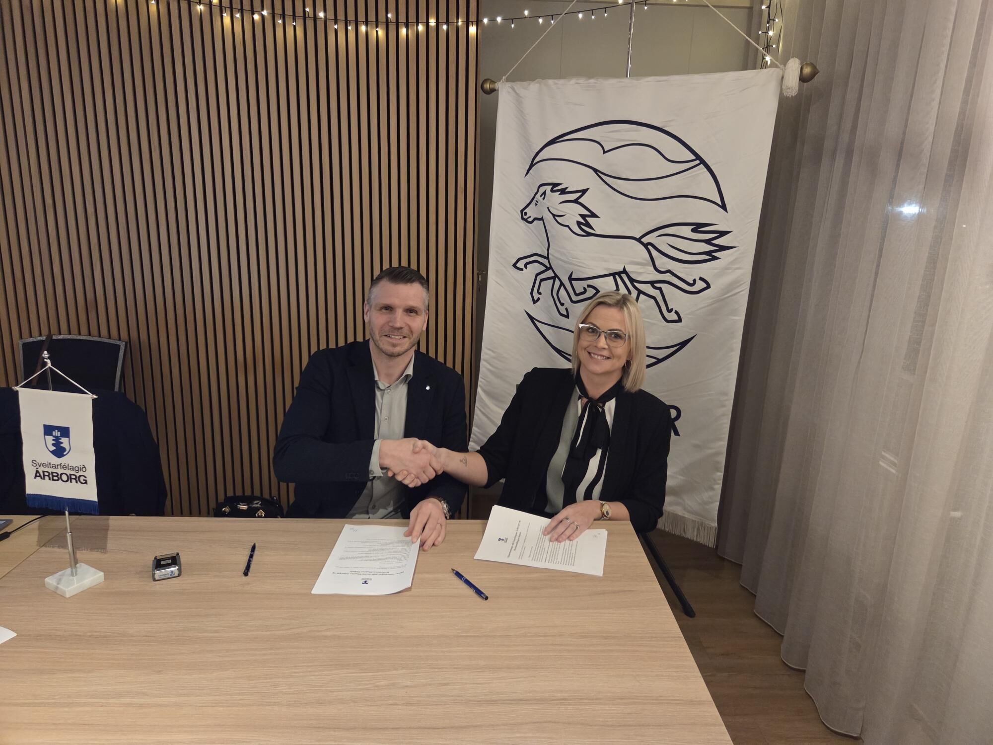 Það voru Bragi Bjarnason, bæjarstjóri Árborgar og Berglind Sveinsdóttir, formaður Sleipnis sem skrifuðu undir samninginn sem gildir út árið 2030.