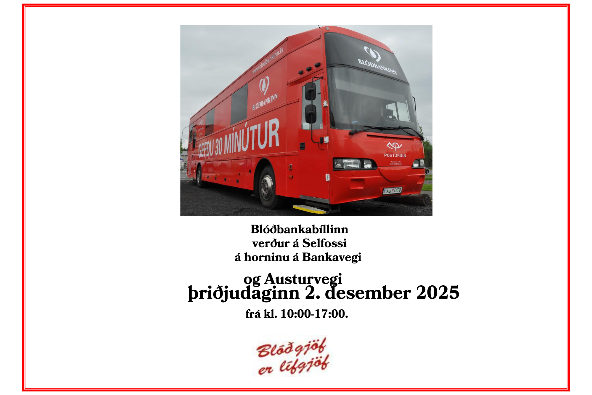 Blóðbankabíllinn verður á Selfossi þriðjudaginn 2. desember.
