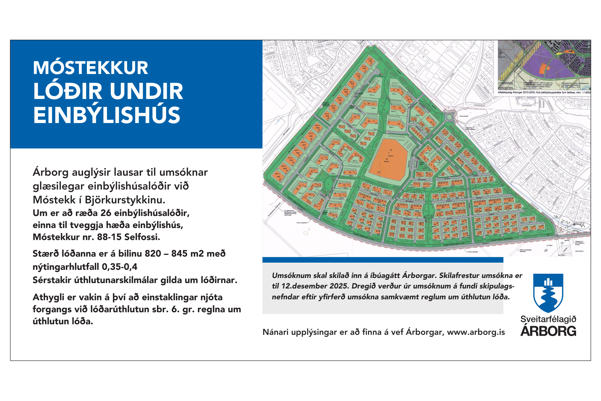- Árborg auglýsir til sölu land í Stekkjahverfi