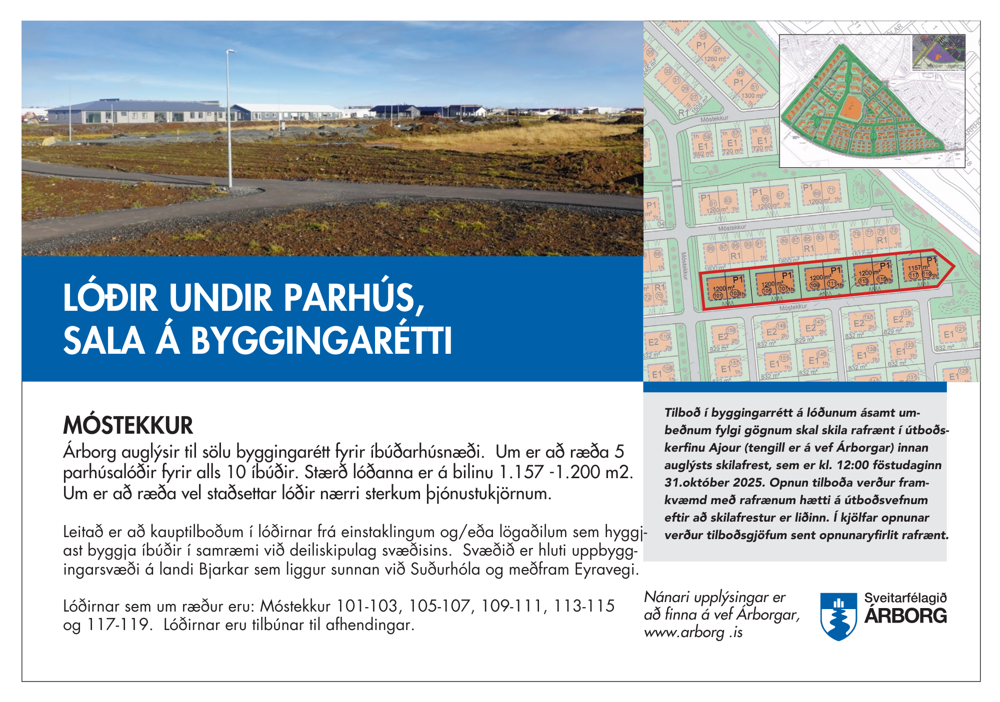 Móstekkur. Árborg auglýsir til sölu byggingarétt fyrir íbúðarhúsnæði.