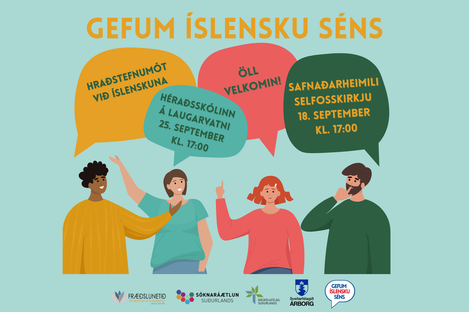 Czy chcesz mówić po islandzku? Szybkie randki z językiem islandzkim w sali parafialnej kościoła w Selfoss 18 września o godzinie 17:00 oraz w Héraðsskólinn w Laugarvatn 25 września o godzinie 17:00. Spotkanie będzie przypominało randkę typu speed dating z tą różnicą, że celem będzie ćwiczenie języka islandzkiego. Lekkie przekąski i wszyscy mile widziani!